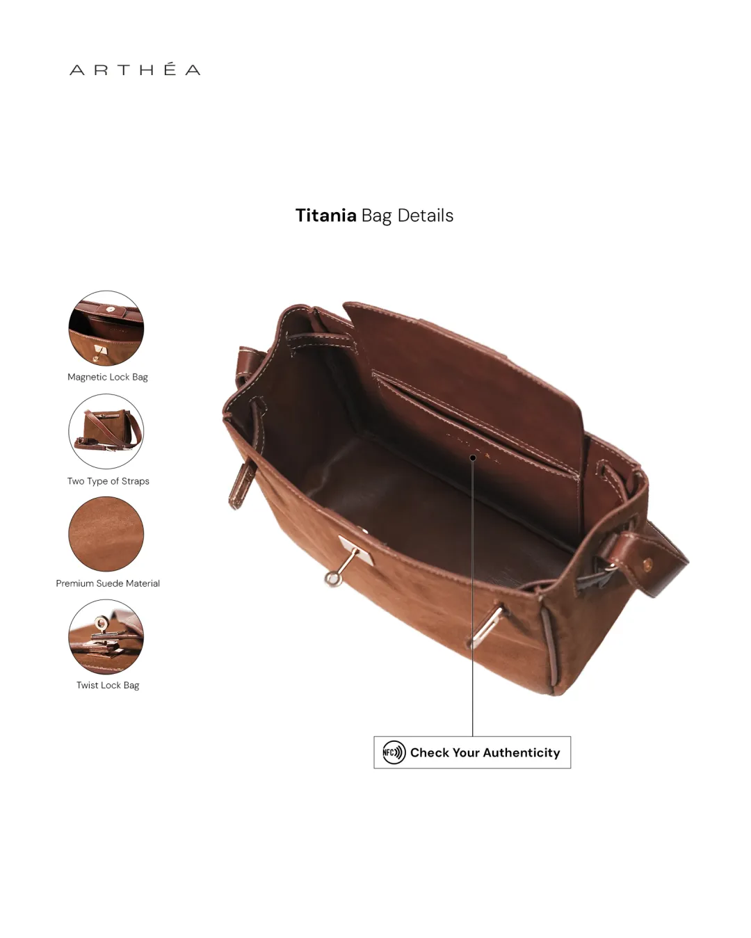 · Elegant Lock Closure – Features a magnetic lock system and flap with twist-lock for extra security